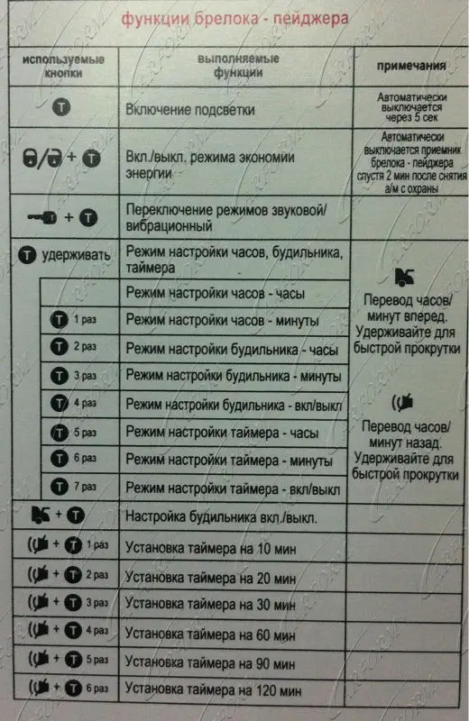 Функциональные возможности брелока-пейджера.