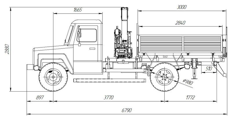 | Габаритные размеры автомобиля (длина х ширина х высота по кабине без нагрузки), мм | 6395 х 2380 х 2220 |
