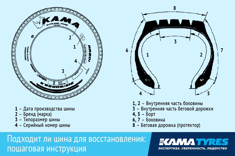 Проверяя шины, чтобы убедиться, что они по-прежнему безопасны в использовании, помните, что главным критерием всегда является техническое состояние и параметры шины (например,грамм. глубину протектора), а не дату изготовления.