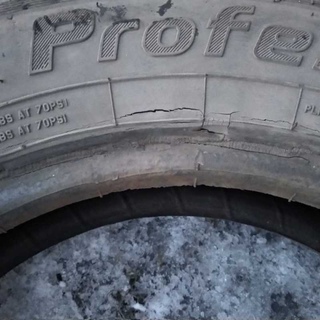 Автошины с такими изменениями структуры и с дефектами покупать не стоит. Прослужат они недолго, что вынудит опять тратиться финансово. Если есть возможность, то стоит посмотреть, как хранится продукция на складе.