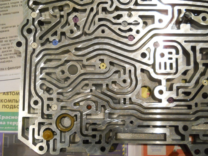 Каналы гидроблока и клапаны забиваются грязью. Пружины не возвращают плунжеры в исходное положение Соленоиды не могут открыть залипший клапан. Отсюда появляются толчки и рывки при переключении передач. Металлический абразив истирает сепараторную платину и каналы плиты, меняя их геометрию. Появляются протечки масла.