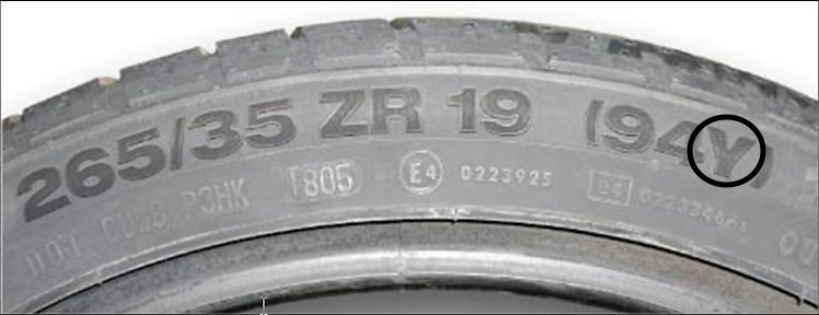 — Символ скорости : указывает максимальную скорость, при которой каждая шина может выдерживать нагрузку, соответствующую индексу нагрузки.