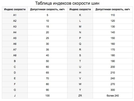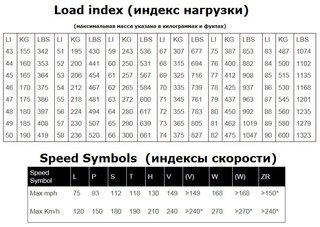 Индексы нагрузки и скорости шин