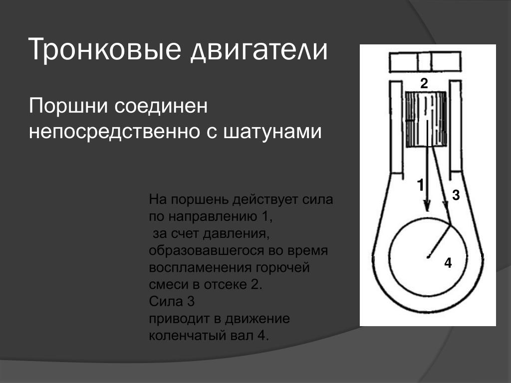 Затем, после прохождения поршнем ВМТ и реверсирования боковой тяги, осуществляются полные контактные поверхности большой тяги с меньшей склонностью к удару поршня.