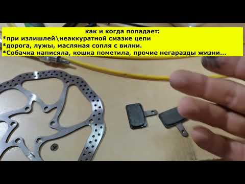 Это может произойти, если на велосипеде с дисковыми тормозами использовалась аэрозольная смазка, и часть ее попала на роторы или колодки — при использовании таких продуктов требуется большая осторожность.