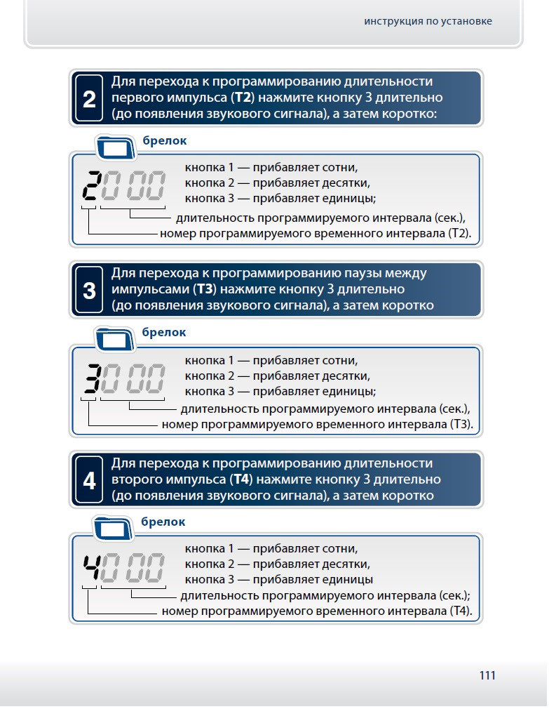 - Пункт под номером 4 повторяется для каждого программируемого пейджера. Учтите, что интервал между настройкой очередного пульта должен составить не более пяти секунд. При последующей настройке пейджера комплекс должен издать соответствующее число импульсов. Для второго пульта — два звука, для третьего — три и т. д.