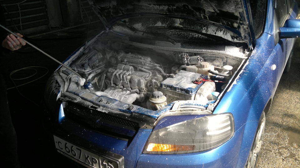 Если подкапотное пространство очень грязное, то, вероятно, процедуру придется повторить, так как с первого раза отмыть все не удастся.