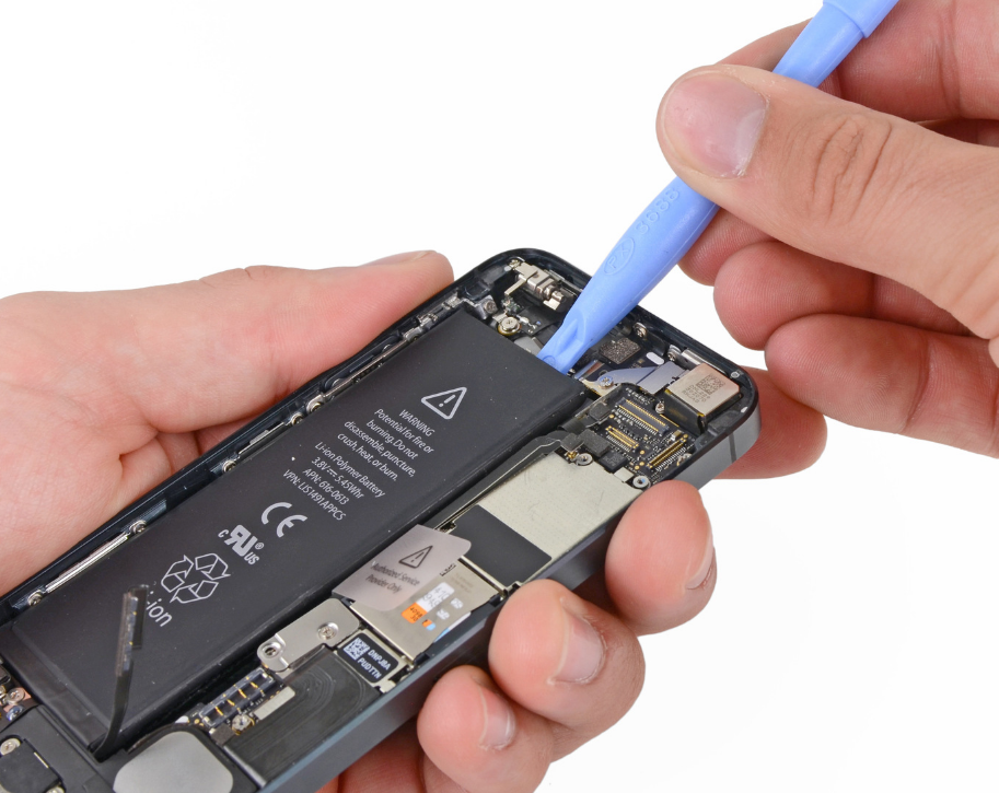 Вставьте отмычку в зазор между батареей и стенкой батарейного отсека.
