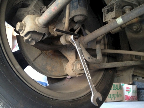- Теперь опускаете автомобиль и до конца затягиваете гайки, после того, как стойки займут правильное положение. Гайки рекомендуется подтянуть и после небольшого пробега в несколько километров.