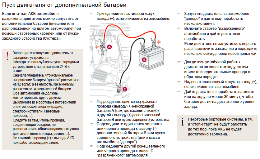 - Подождите около 5 минут, прежде чем запускать двигатель автомобиля с разряженным аккумулятором.