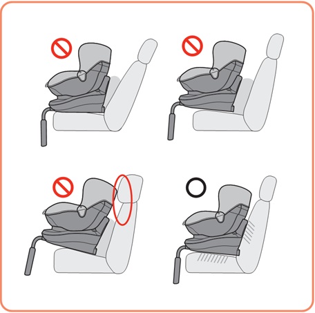 Выравнивание сидений, обращенных вперед. Большинство сидений, обращенных вперед, должны быть на одном уровне со спинкой сиденья автомобиля. Всегда сверяйтесь с руководством пользователя, чтобы узнать, разрешает ли производитель полулежачее положение.
