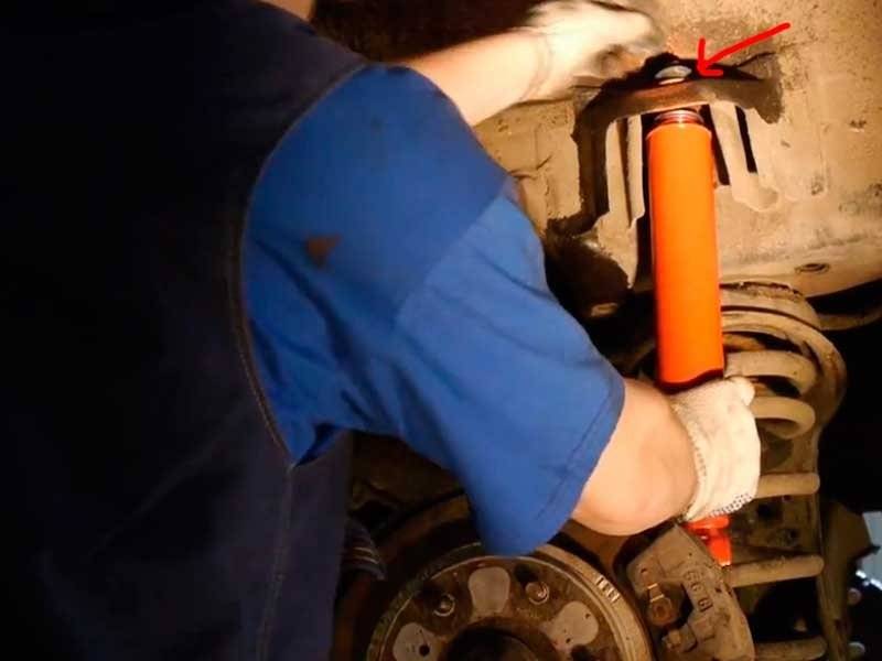 — закручивать верхнюю гайку, которая идет в комплекте с амортизатором, можно только ручным инструментом — сначала головка-ключ, потом полная затяжка динамометрическим ключем.