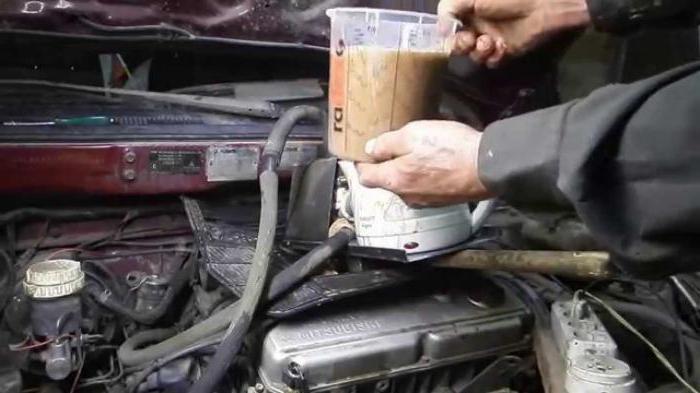 Двигатель статочно прогреть в течение пяти минут. По истечении сорока минут раствор нужно слить, после чего обычной водой промывается вся система. Процедура промывки водой повторяется несколько раз до тех, пока вода не будет сливаться чистой. После того, как промывка закончилась, нужно залить в систему охлаждения жидкость снова.