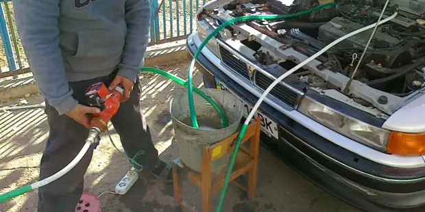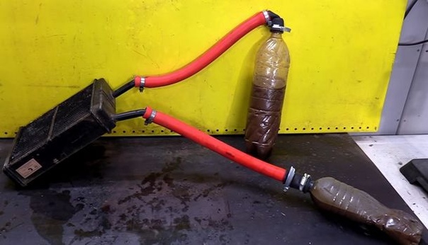 Система шлангов для промывки радиатора лимонной кислотойЕдинственное, что следует учесть — промывка радиатора печки ВАЗ-2114 должна осуществляться в тёплое время года или в гараже, так как ни в коем случае нельзя допускать длительного пребывания автомобиля на морозе. В противном случае вода в системе замёрзнет и последствия могут оказаться более чем печальными.