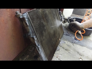После этого нужно приступить к продуванию радиатора отопительного приспособления посредством сжатого воздуха, находящегося в компрессоре. Как правило, наружу должно выйти много грязи.
