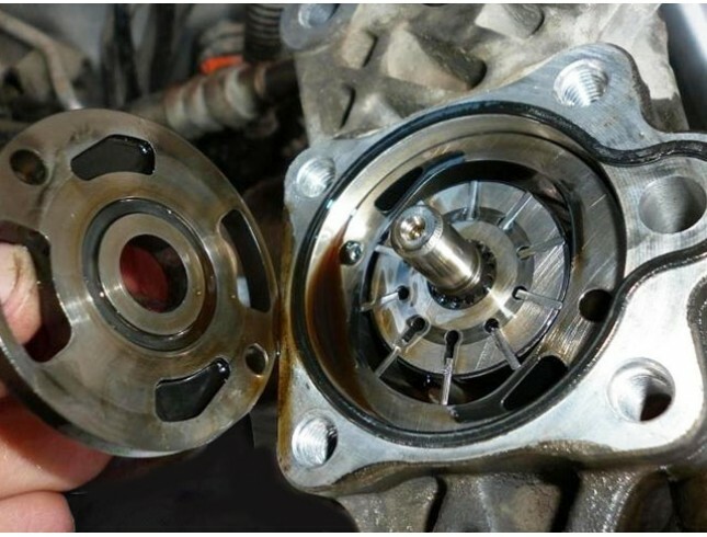 Еще одна причина — повышенная утечка масла. При жужжании и слабости насоса нужно проверить центробежные пластины насоса и статор на износ. Последний легко восстанавливается элементарной шлифовкой наждачной шкуркой на токарном станке, но ненадолго.