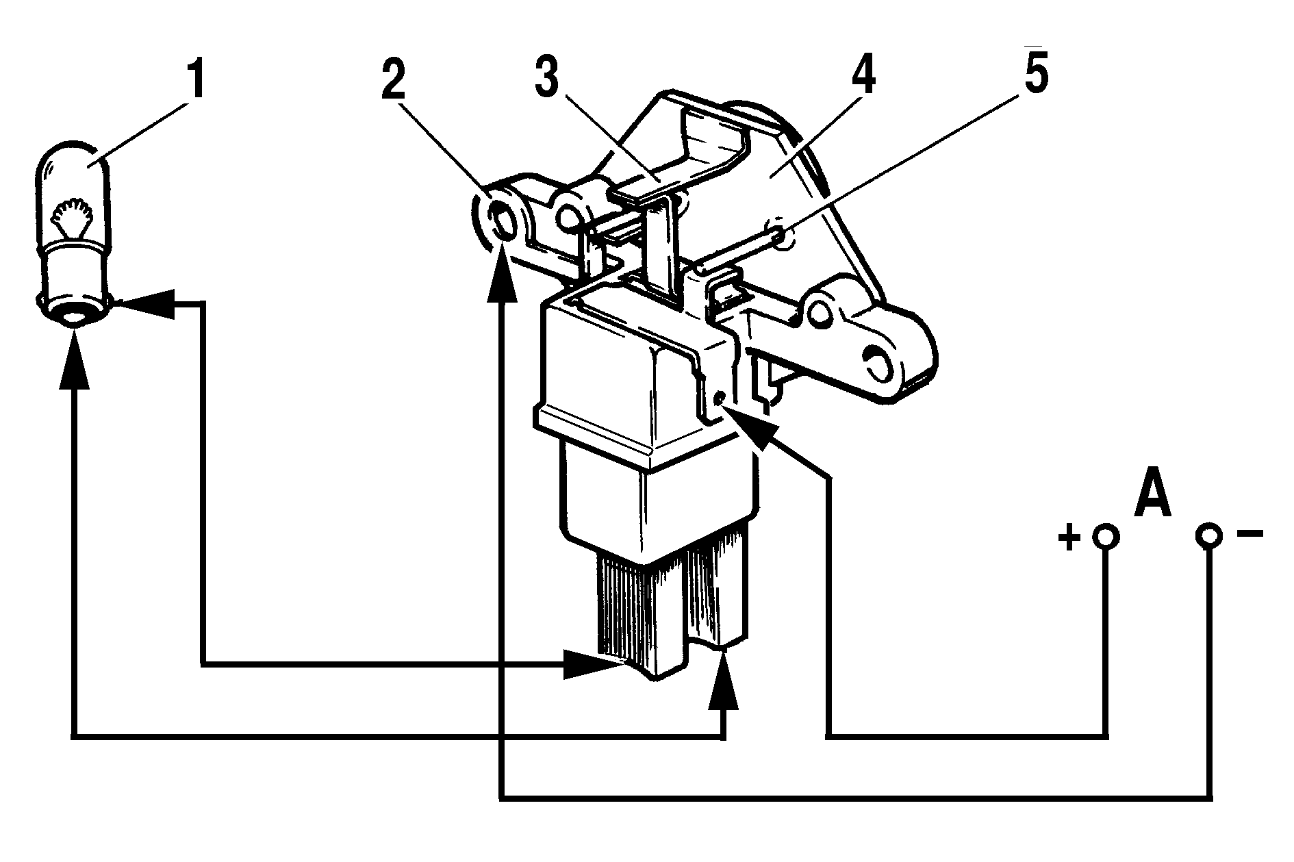 и положительный вывод к винту клеммы регулятора A. Вольтметр должен показывать напряжение аккумулятора. Если нет, проверьте цепь A на наличие обрывов или плохих соединений.