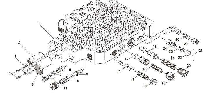 На качество переключения влияет давление этой жидкости. Если оно слишком высокое, переключение становится жестким, а если слишком низкое, сцепление перегревается. Как правило, в системе используется несколько соленоидов, каждый из которых имеет цветную маркировку проводов для облегчения идентификации и замены. Находятся они в гидроблоке – гидравлической клапанной плите. Они вставлены в канал, где скрепляется с ними с помощью болта или специальной прижимной пластины. С другого конца он присоединяется с помощью шлейфа, или штекера электропроводки к блоку управления автоматики.