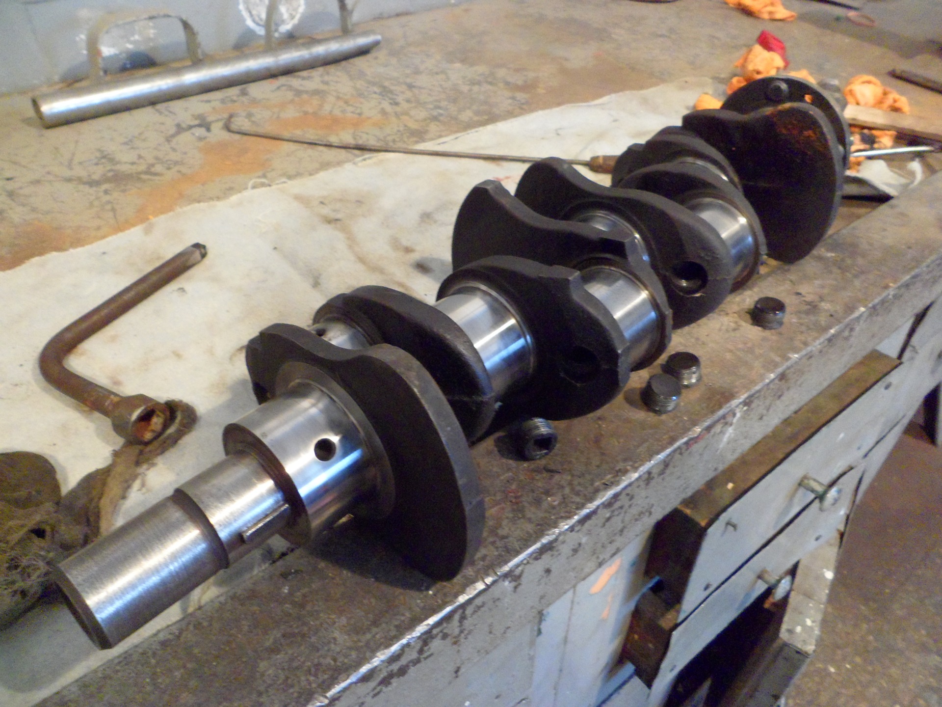 Очевидно, что сначала необходимо снять масляный поддон и насос, чтобы получить доступ к коленчатому валу и корпусам коренных подшипников.