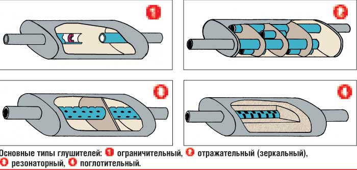 Громкость выхлопа также можно немного снизить с применением специальных видов глушителей.