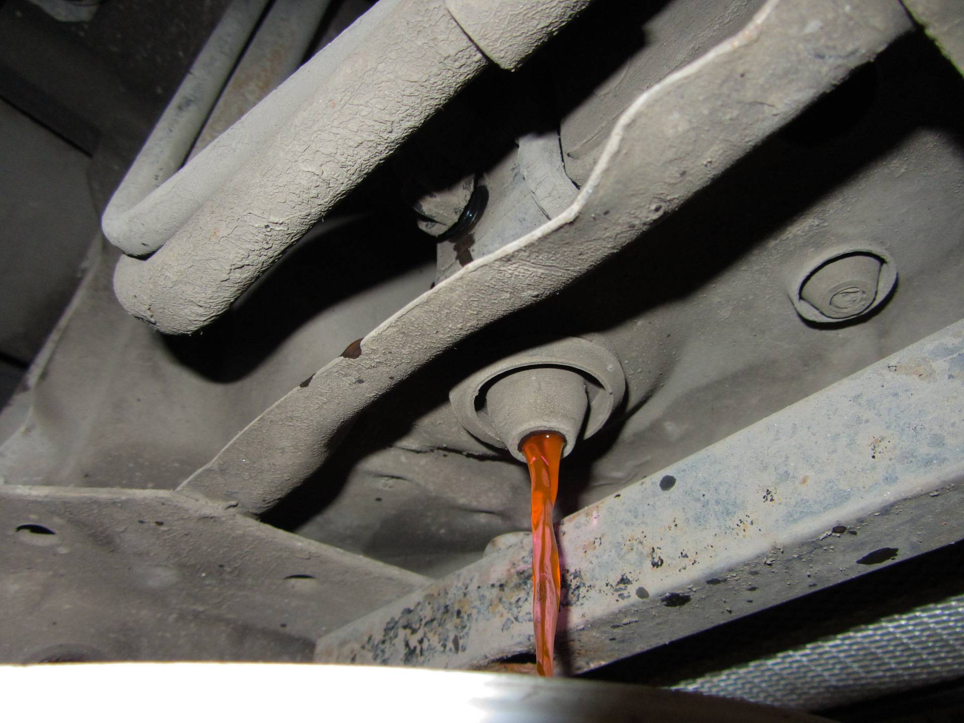 - Ждем, пока жидкость выльется из сливного отверстия, сливную пробку не закручиваем.