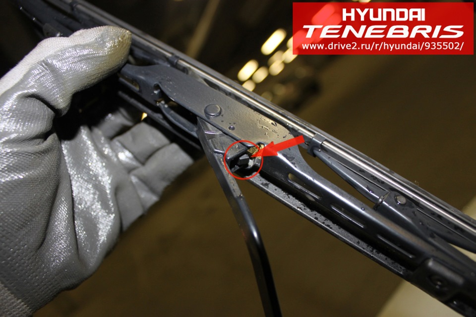 Затем найдите отверстие в рычаге стеклоочистителя, которое находится рядом с шарнирным штифтом.