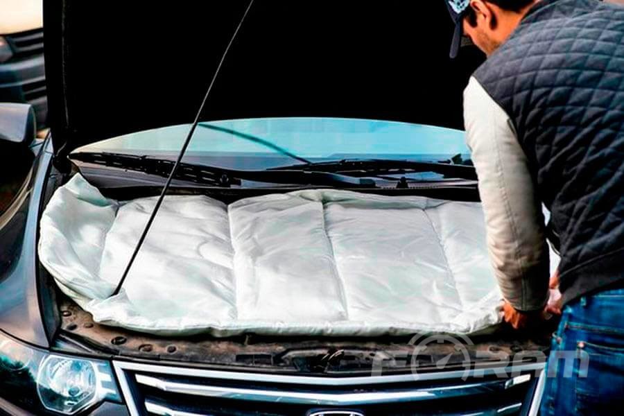 Заблаговременно утеплите автомобиль. Это позволит не только сохранить тепло в салоне, но и даст неплохую звукоизоляцию. Особого внимания требует утепление капота.