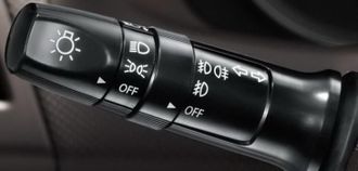 2. В течение 2 минут переведите подрулевой переключатель по направлению к рулевому колесу и отпустите его. Включаются габаритные фонари, фары ближнего света и фонари освещения регистрационного знака.