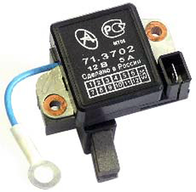 Схема регулировки напряжения осуществляется за счет электросхемы, которая располагается на печатной плате(шоколадка) или в виде единого полупроводникового модуля(таблетки) со щетками. Релюшка, находящаяся внутри генератора, как правило не способна адекватно реагировать на температуру окружающей среды, из-за своего расположения близко к работающему двигателю. Встроенное реле иногда заменяют на трехуровневый регулятор напряжения, что обусловлено большей эффективностью изделия за счет ручной корректировки выдаваемого напряжения.