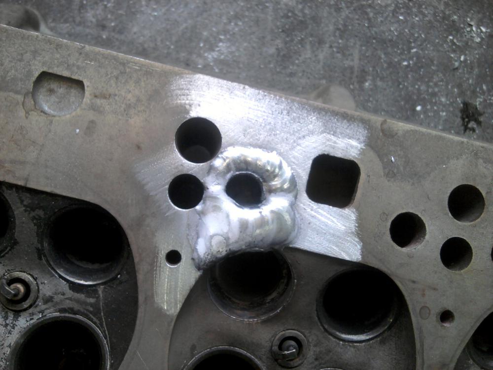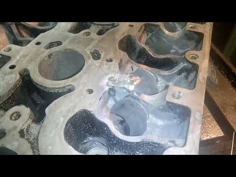 Большинство мелких трещин в чугунных, а также алюминиевых головках можно устранить с помощью штифтов. Более крупные трещины в алюминиевых головках обычно требуют сварки TIG (вольфрам в среде инертного газа). Более крупные трещины в чугунных головках часто можно устранить с помощью сварки в печи или сварки пламенем.