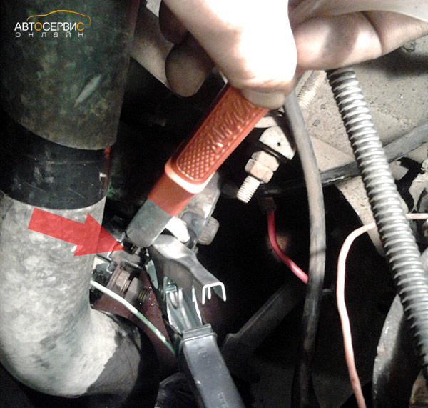 Обязательно перед этим нужно поставить машину на ручник и в нейтралку, во избежание несчастных случаев. Сам инструмент должен иметь изолированную ручку и довольно толстый стержень. Поэтому рекомендуется использовать один из вышеописанных предметов. Монтировку или ключ можно обмотать изолентой в месте захвата.