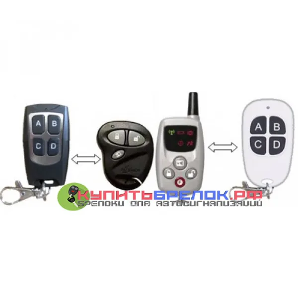 Модели сигнализации с автозапуском имеют по два брелка: один с 5-ю кнопками и с дисплеем, а второй — простой 4-кнопочный. Основной брелок имеет опцию входа в режим настроек программирования, а также модуль двусторонней связи.