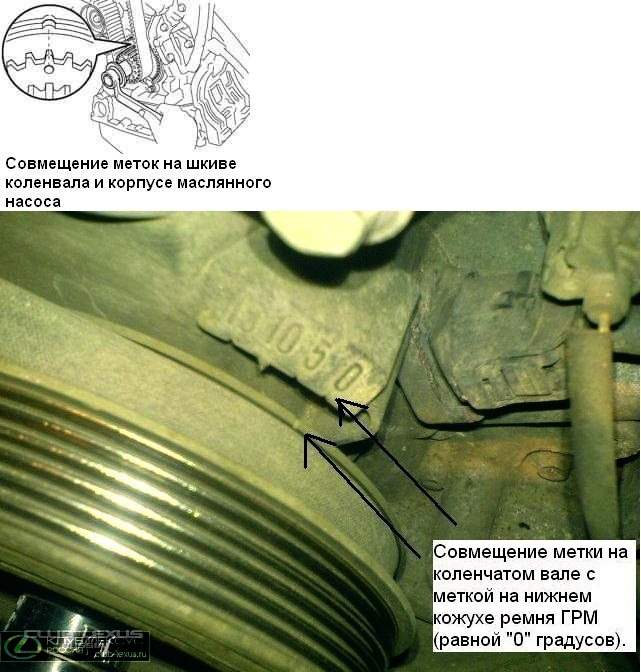 Доверните коленчатый вал в сторону меньшего угла поворота до совмещения уст…