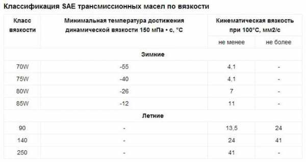 Для нормирования показателей вязкости в трансмиссионных маслах был разработан стандарт SAE J306. В статье о классификации моторных масел есть его описание с табличкой вязкостей, здесь же лишь выскажу основные соображения. Цифра «зимней вязкости (та, сразу после которой идёт буква w – winter («зима» по-английски)) должна быть не больше 75, по крайней мере для средней полосы России, где зимой бывают морозы за -20. Иногда далеко «за» . По большому счёту больше ни о чём эта цифра не говорит.