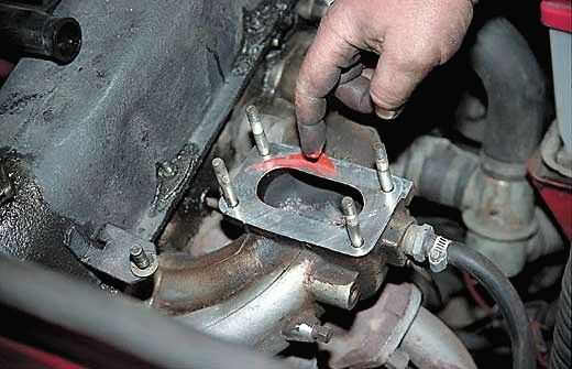 4. Аккуратно очищаем посадочную поверхность на коллекторе, избегая попадания грязи внутрь двигателя.