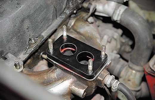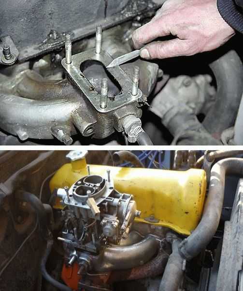 - Вместо двух прокладок можно приобрести одну, где два отверстия. Ее ставят между карбюратором и прокладкой из гетинакса. Кроме того, берут еще одну — с овальным отверстием. Она предназначена для установки между коллектором и гетинаксовой прокладкой.