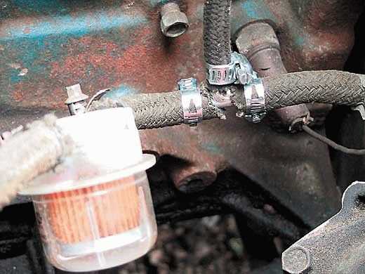 13. В топливопровод к фильтру тонкой очистки врезаем тройник и подсоединяем топливный шланг обратки карбюратора.
