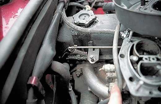 После этого принудительно откройте воздушную заслонку на 1/3 ее хода. Обороты при этом должны установиться на 300 единиц меньше первоначальных. Если цель не достигнута, то тягой от пневмопривода измените количество оборотов, отрегулировав длину тяги или «подогнув» ее.