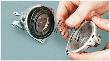 Проверить работу ускорительного насоса карбюратора можно путем стремительного нажатия на педаль. Следует проверить и работу диафрагмы пневмопривода.