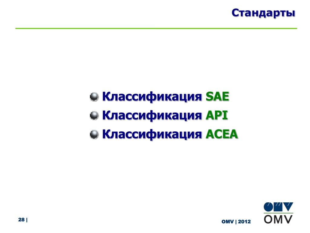 Международная классификация масел API по уровням эксплуатационных свойств
