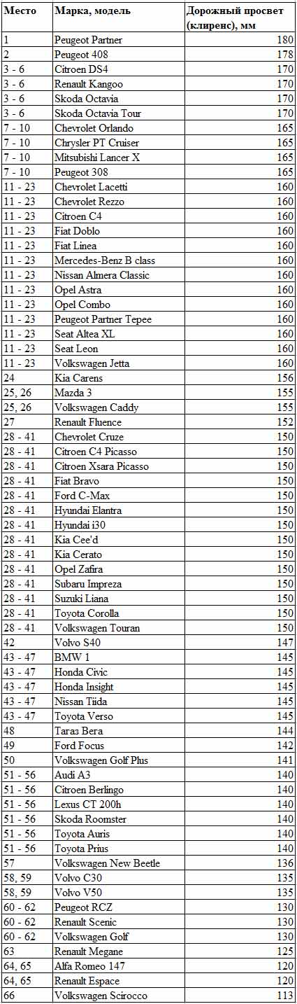 Сравнительная таблица клиренса автомобилей:от легковых до внедорожников