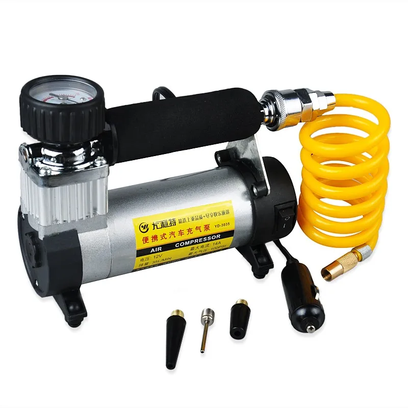 Переносной воздушный компрессор Energizer EDC12035 Подсоединяется к прикуривателю и может создавать давление до 120 фунтов на квадратный дюйм. Он имеет цифровой дисплей, который легко читается. Вы можете предварительно установить желаемое давление, и машина автоматически отключится, поэтому вам не нужно следить за манометром. Постоянный поток воздуха охлаждает двигатель, а цельнометаллические компоненты двигателя продлевают его работу. Шнур питания имеет длину около 10 футов, а шланг — около четырех. Включает в себя четыре насадки, а яркая светодиодная фара помогает освещать территорию при работе ночью.