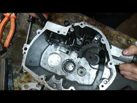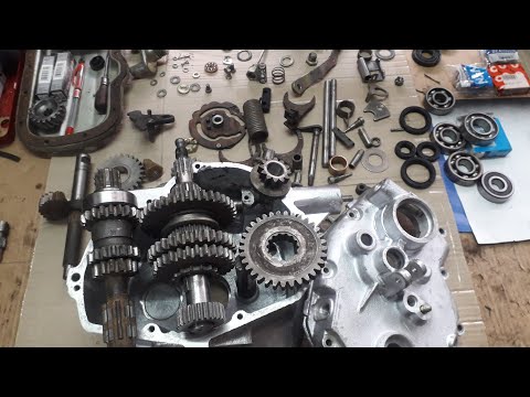 Сборка коробки, утсановка валов первичного и вторичного, сборка заводного механизма.