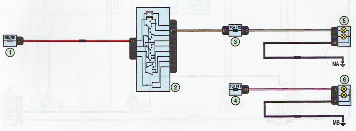 Схема подключения противотуманных фар и заднего противотуманного фонаря Лада Ларгус.
