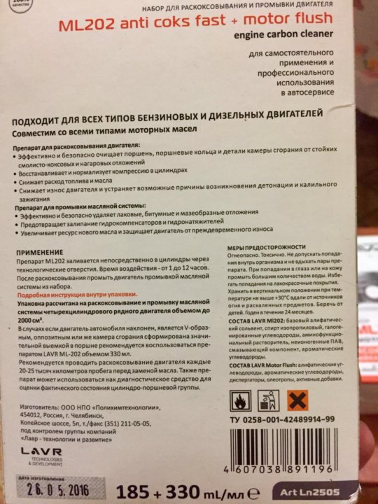 3. Набор безопасно очистит камеры сгорания и систему смазки от смолисто-коксовых отложений, продуктов распада масла и износа деталей, усиливая действие и эффективность друг друга при совместном применении.