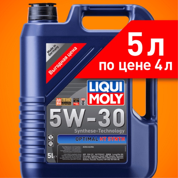 | 39001 | Масло моторное Liqui Moly Optimal HT 5W30 A3 / B4 (Емкость: 4, 0 L) |