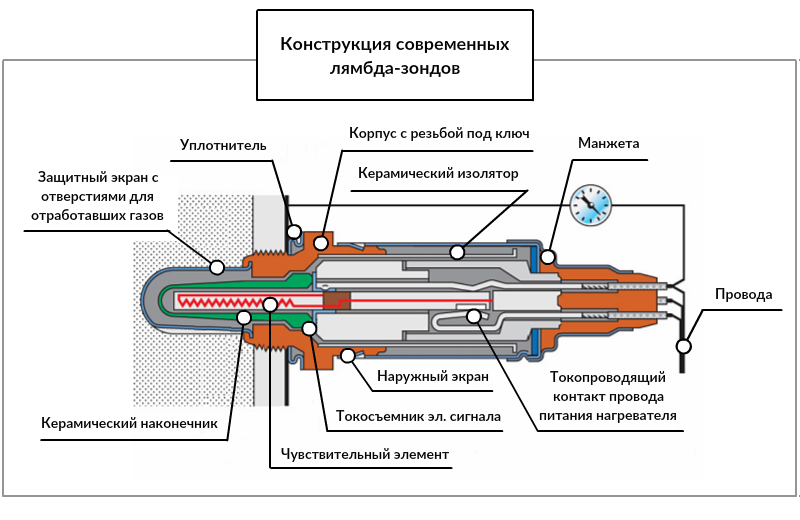 Виды датчиков кислорода по устройству конструкции и принцип работы: