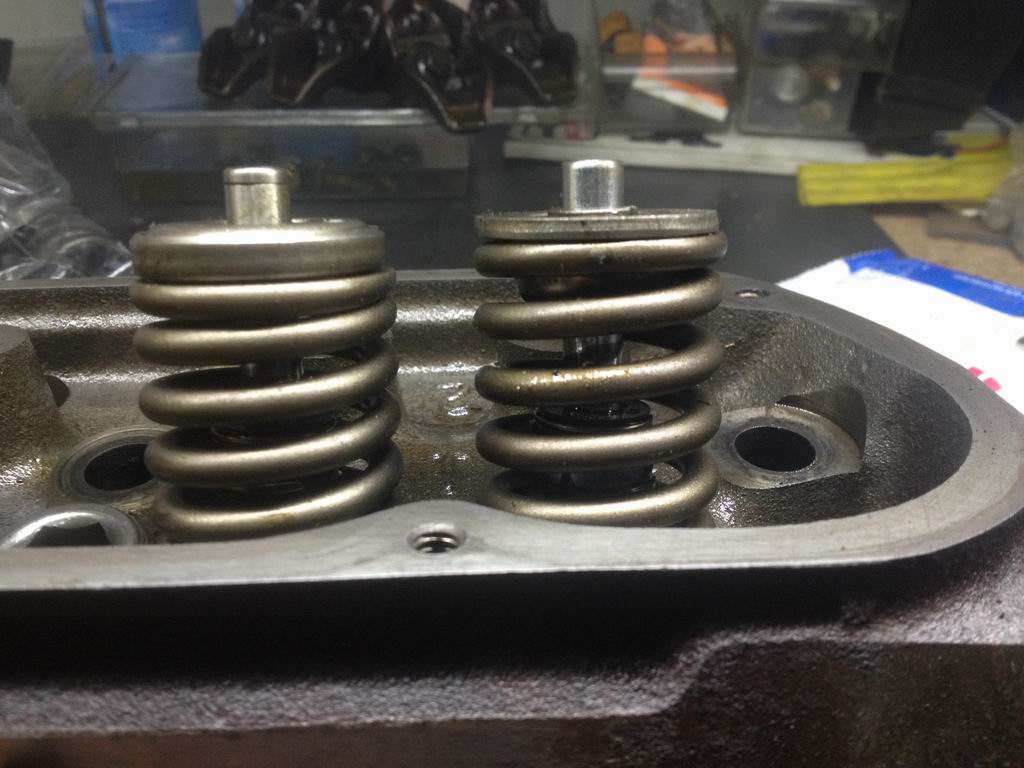 Комплект держателя, который мы используем (TFS-2500286P), имеет более короткие уплотнения клапана, чем стандартные, чтобы устранить дополнительное сжатие пружины из-за дополнительного подъема кулачка кулачка. Сложите прокладки, нижний фиксатор и добавьте более короткое уплотнение клапана, постукивая по нему 11-мм головкой.