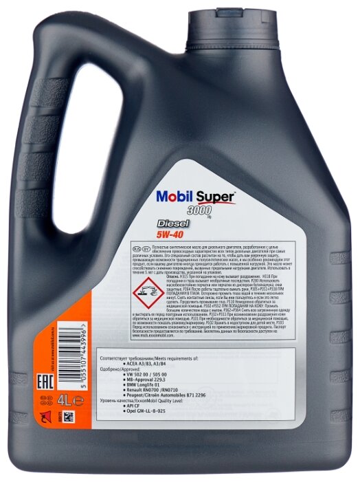 ExxonMobil рекомендует Mobil Super 3000 X1 для применений, требующих: 5W-40