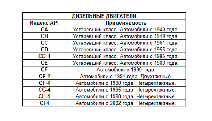 | CF-4 | устаревшие | Не подходит для использования в большинстве двигателей с дизельным питанием, построенным после 2009. | ||